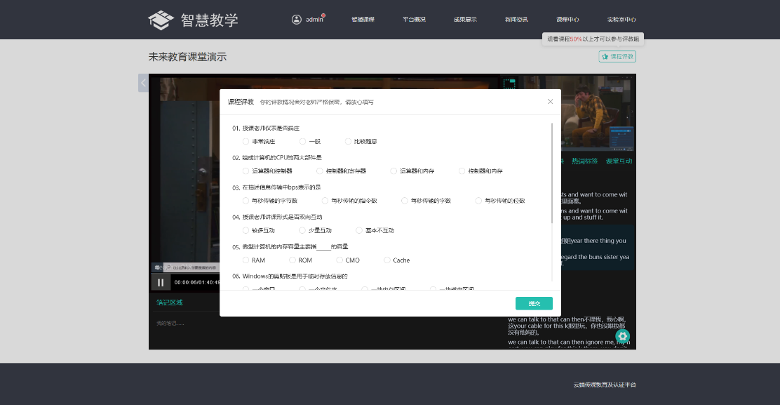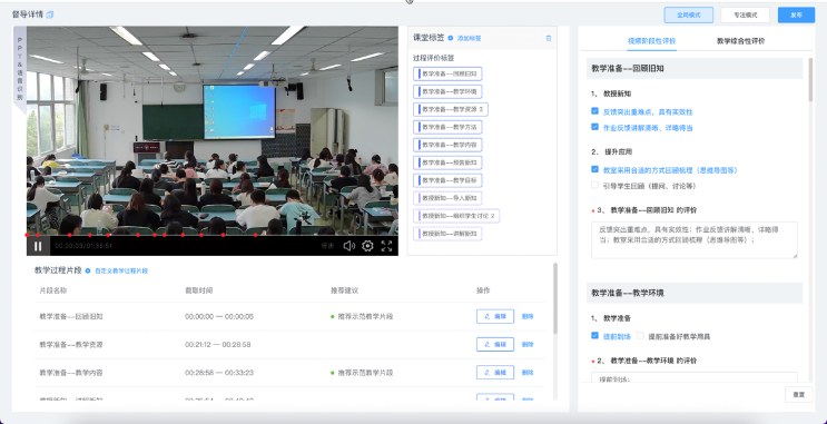 围绕老师的课堂教学过程,动态追踪教学质量,助力学生教师提升,促 进课程建设和教师发展