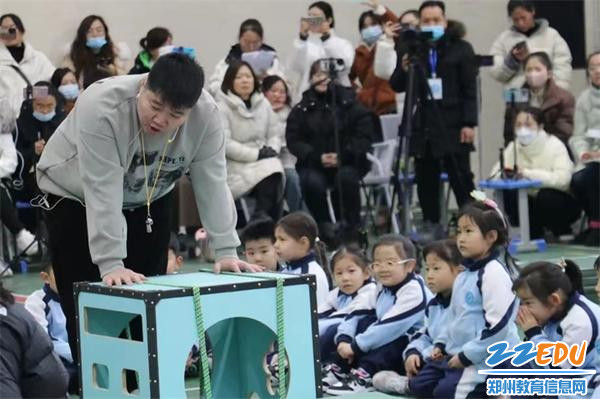 为更好落实《3-6岁儿童学习与发展指南》精神,进一步提升全市幼儿园教师体育活动的组织和指导能力,促进幼儿身心全面和谐发展。12月26日,由郑州市基础教育教学研究室主办、郑州市中原区教学研究室承办、中原区第四实验幼儿园协办的郑州市幼儿园体育活动观摩研讨会在郑州市第八十中学如期举行。郑州市基础教育教学研究室幼教教研员陈冠亚老师以及来自全市各区县(市)的教研员、幼儿园业务领导等近300人参加活动。本次活动共分课例展示、主题报告和专家引领等环节。