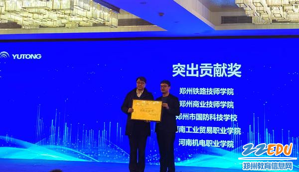 此外,大会还颁发了模范驻厂教师奖,凭借在宇通集团驻厂期间的不懈努力和优异表现,郑州市国防科技学校驻厂教师雷柱获得了这一殊荣。