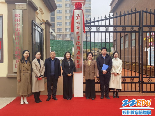 在热烈祥和的气氛中,与会领导共同为郑州师范学院附属幼儿园揭牌,寓意着开启新篇章。