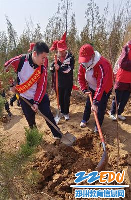 为深入引领广大青少年传播绿色理念、参与植树造林,3月12日,郑州市实验高中校团委组织师生志愿者到郑州市全民义务植树基地参加“‘碳’路美好,共植未来”春季义务植树活动,40位志愿者共同栽种下一颗颗松树树苗,为黄河流域生态保护和高质量发展贡献青春力量。