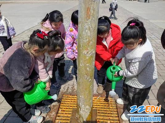 登封市博文路小学开展给大树浇浇水活动