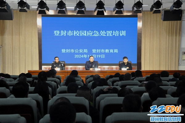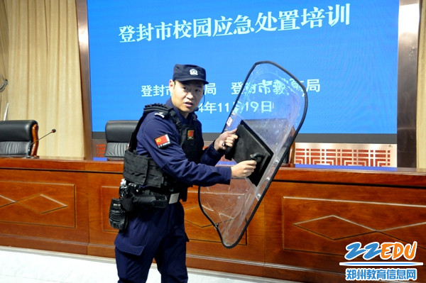 为全面提高校园安全应急防范能力,提升学校应对处置突发事件的能力和学校保安人员专业素养,11月19日下午,登封市教育局联合登封市公安局组织学校开展应急处置培训活动。登封市政府副市长、登封市公安局党委书记、局长郭衍昌,登封市教育局党组书记、局长马宝仓参加活动。