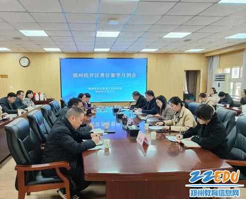 11月27日上午,郑州经开区教文体局召开责任督学月例会,旨在总结秋季学期责任督学入校摸排工作情况,部署12月份督导主题,并对下一阶段教育督导工作提出新要求。郑州经开区教文体局党委书记戴红燕出席会议,郑州经开区教文体局相关科室负责人、九龙中心校、共建区中心校负责人及责任督学参加会议。会议由郑州经开区教文体局党委委员周旭锦主持。