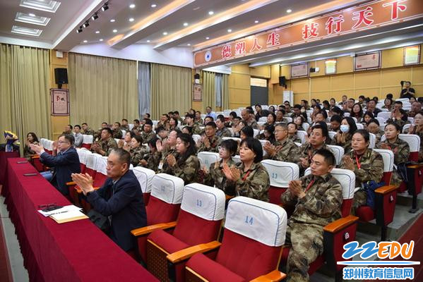 为全面加强新时代教师队伍建设,弘扬高尚师德师风,4月22日下午,郑州市国防科技学校邀请“时代楷模”、南阳市镇平县高丘镇黑虎庙小学校长张玉滚开展了一场以“铸魂强师,奋进有我”师德主题报告会。学校领导张凯、段红军、黄江元、张辉以及全体教师认真听报告。