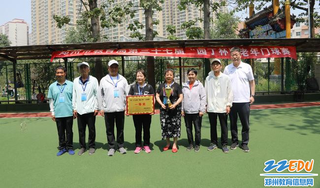比赛结束后,郑州市教育局离退休干部工作处处长白天为获奖门球队颁发奖牌和奖杯。