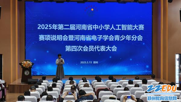 5月15日下午,2025年第二届河南省中小学人工智能大赛首次赛项说明会暨河南省电子学会青少年分会第四次会员代表大会在郑州市第五十七中学南校区召开,河南省电子学会会员单位及各合作院校领导出席会议。