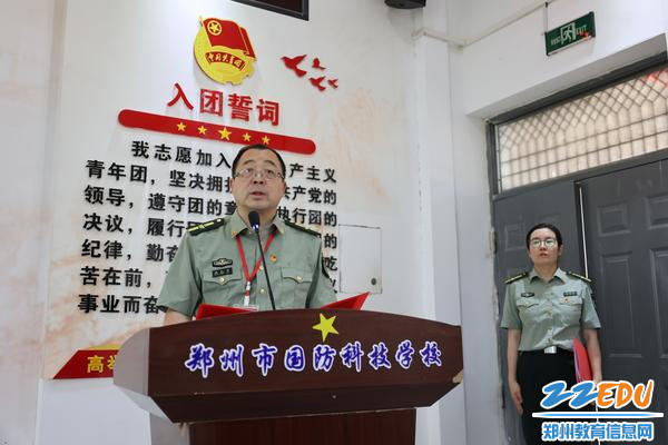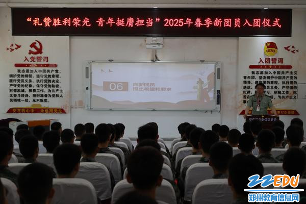 郑州市国防科技学校党委书记张凯向新团员提出希望和要求