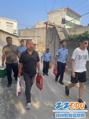 8月13日,郑州市第九十九中学党支部副书记郭红军带领教师、教官、干警组成家访小组,携带米面粮油等生活必需品及学习用品,前往家庭经济困难学生郭某家中,展开一场充满温情的深度家访活动,不仅为困难家庭送去物质支持,更传递了学校对每位学生成长环境的高度关注与坚实承诺。