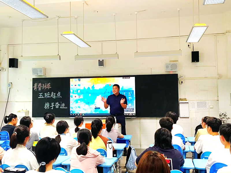 接着,李明德拿起粉笔,郑重地写下“学贵心悟,持之以恒”八个大字。这八个字,如同一束明亮的光,瞬间照亮了同学们求知的心房。李明德着重强调了“悟”字的深刻内涵,他表示,学习绝非机械地接受知识,而是一场主动探索、深度领悟的心灵之旅。希望同学们在高中时期学会主动学习,主动思考,树立远大的理想和抱负,培养良好的学习习惯和自主学习能力;树立正确的价值观和人生观,做一个有责任感、有担当的新时代青年;要积极参加学校的各项活动,锻炼自己的综合素质,为未来的发展打下坚实的基础。