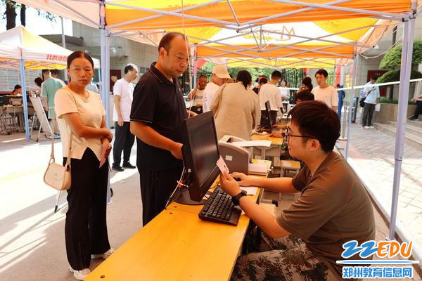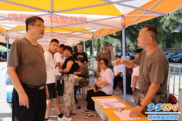 在新生报到点,学校党委书记张凯详细了解新生接待等工作,叮嘱教职工要以良好的精神面貌、热情周到的服务迎接新同学,让每位新生感受到郑州市国防科技学校大家庭的温暖。