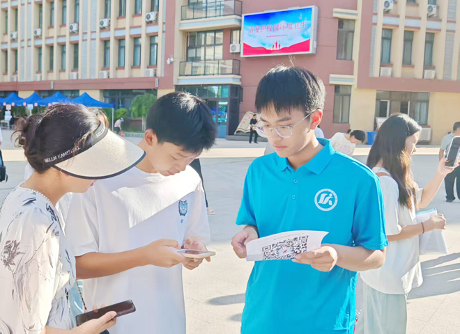 迎新现场,一群身着蓝色T恤的学生志愿者们,如同一道亮丽的风景线,热情洋溢地穿梭在人群中。他们用清晰的指引和亲切的微笑,带领新生和家长有序进入校园。看到新生拖着沉重的行李箱,便立刻主动上前接过行李。还有的则化身为“校园活地图”,耐心细致地为初来乍到的新生指引宿舍、教学楼和各个报到点。