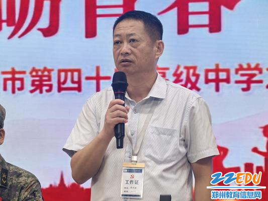 学校党委书记贾洪波宣布:“郑州市第四十四高级中学2025级新生国防教育暨军训开营!”话音落下的瞬间,现场掌声雷动,这声号令,正式点燃了新生们的军训征程。