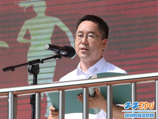 “修德”篇章是典礼核心。庄严的升旗仪式后,校长来松涛发表致辞,回顾学校2024年跃升郑州一批次高中的突破,提出“二次创业”目标,强调需发扬载人航天精神,其与“永不言弃”校训、“善学善思善行”学风一脉相承。他重点阐释“以‘德’为帆,涵养精神高度”,教育终极目的不只是传授知识,更是塑造人格,培养有温度、有担当、有良知且具优良德行的“完整的人”。尊重师长、诚实守信等朴素品质,是支撑人走得更远的力量,愿同学们在追求卓越时,永葆对生命的敬畏、对正义的坚守。”同时结合纪念中国人民抗日战争暨世界反法西斯战争胜利80周年,寄语师生胸怀家国情怀,以“志”锚定航向、以“勤”搏击学海。
