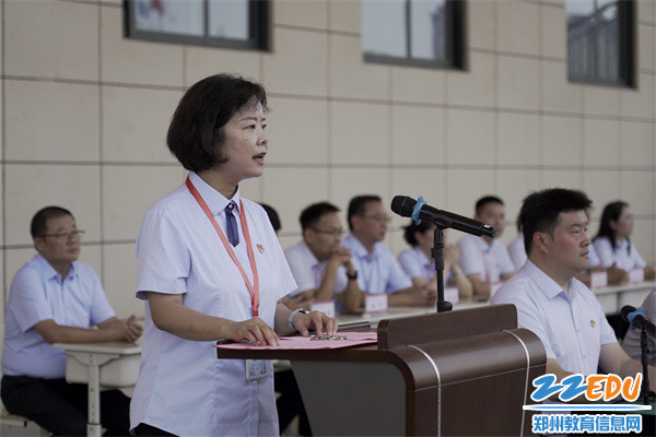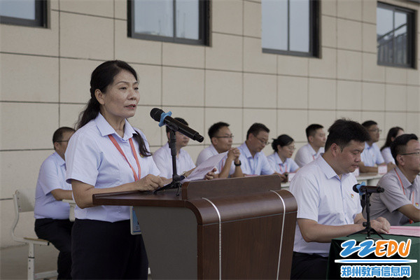 郑州市商贸管理学校校长陈红霞宣读上学期表彰决定