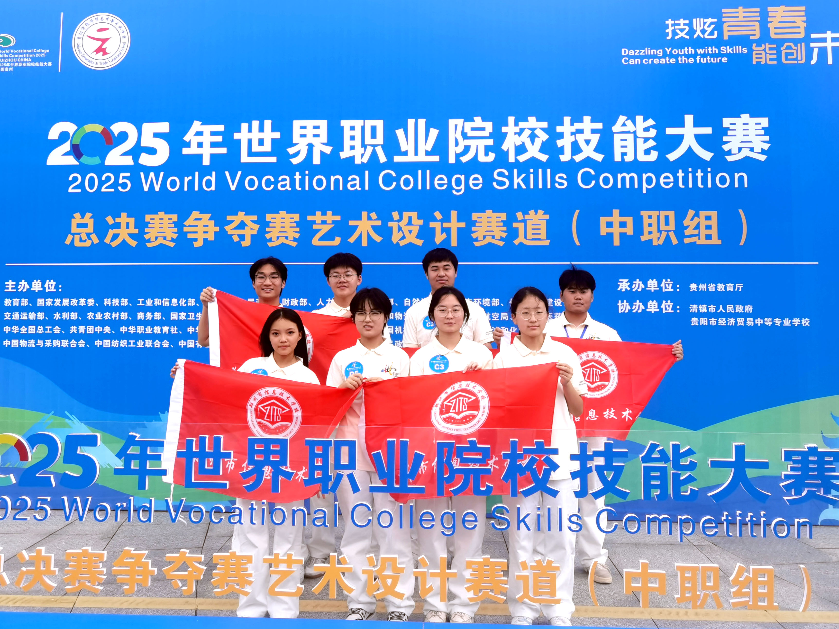 8月29日,在2025年世界职业院校技能大赛总决赛争夺赛艺术设计赛道(中职组)比赛中,郑州市信息技术学校代表队经过激烈的角逐斩获铜奖。