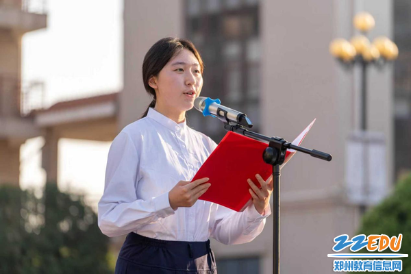 国旗下演讲环节,2024级学生代表孟明杺熠,以校园“千教万教教人求真,千学万学学做真人”箴言为引,结合孔子、司马迁等古人的事例,鼓励同学们勤勉积累。她将2024级高二学子比作“筑路者”,强调沉淀蓄力的重要性;对2023级高三学长学姐,她讲述祖逖、王羲之等名人的励志故事,激励大家以勇气和笃行冲破逐梦阻碍,更呼吁全体同学奋力拼搏,让青春与星辰同耀。