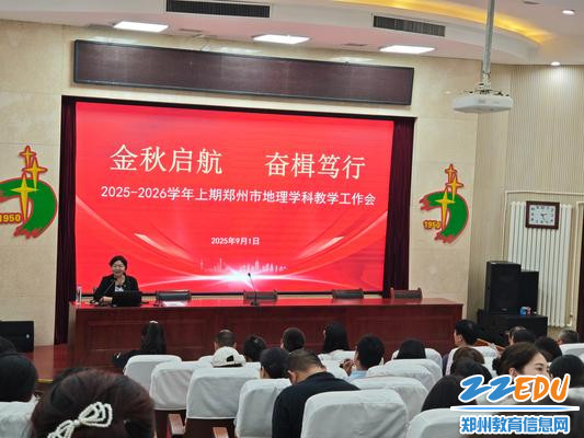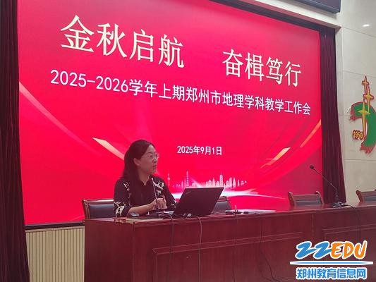 2025年9月1日下午,2025-2026学年上期郑州市地理学科教学工作会在郑州市第七初级中学报告厅召开。此次会议聚焦2025-2026学年地理学科教学工作,全面总结过往经验,深入剖析当下局势,明确规划未来方向,旨在推动郑州市地理教育迈向新高度。参与本次会议的有郑州市各区县(市)的地理教研员、郑州市各高中教研共同体及各学校教研组长、初中地理中心组成员,会议由郑州市基础教育教学研究室地理教研员赵丽霞主持,郑州市基础教育教学研究室地理兼职教研员杨青华做工作总结和安排。