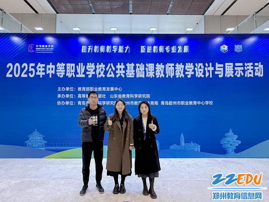 10月27日,在刚刚结束的由教育部职业教育发展中心主办,高等教育出版社和山东省教育科学研究院承办的2025年中等职业学校公共基础课教师教学设计与展示活动中,郑州市信息技术学校吕树欣老师以扎实的专业功底、创新的教学设计和富有感染力的现场表现,赢得了评委与观摩教师的一致好评,荣获“典型案例展示者”(一等奖)。温治疑、杜毅文分别荣获“优质案例展示者”(二等奖)和“案例展示者”(三等奖)。