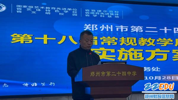郑州市第二十四中学于10月28日圆满举办了第十八届常规教学质量月活动的启动仪式。本次活动聚焦提升教学质量与青年教师培养,着重探讨了会学高效课堂模式的推进、青蓝工程的实施,以及常规教学质量月活动的总结与启动。