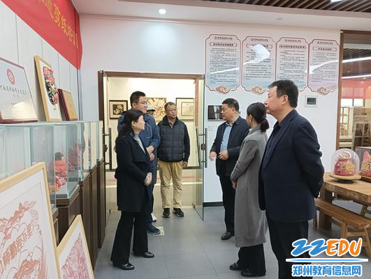 为进一步了解郑州艺术幼儿师范学校“非遗进校园”活动开展情况,一行人来到该校非遗中心实地参观考察。随后,学校领导与专家团队围绕“非遗教育落地与学校发展”召开专题座谈会。学校党委副书记、校长马进伟详细介绍学校非遗传承发展成果。白露肯定学校“非遗+美育”的探索方向,双方就“非遗进校园”活动、校企合作平台展示等方面进行进一步洽谈。