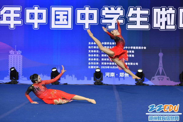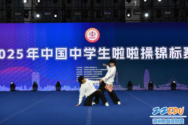 郑州市第十四高级中学两位舞者以默契十足的配合、