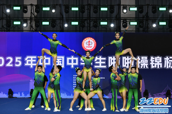 郑州市第十四高级中学啦啦操队以高度默契的团队配合荣获本组第一名