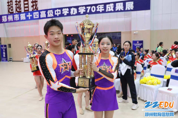 经过两天的激烈角逐,郑州市第十四高级中学最终斩获高中组团体冠军及多个单项冠军。其中,高中组(规定套路)集体技巧一级、高中组(规定套路)小团体配合技巧、高中组(自选动作)小团体配合技巧、高中组(规定动作)爵士初级B套、高中组(规定动作)街舞初级B套、高中组(自选动作)集体街舞等项目均获第一名。高中组(规定动作)花球初级B套项目获第二名。高中组(自选动作)集体爵士项目、高中组(自选动作)双人街舞项目获第三名。