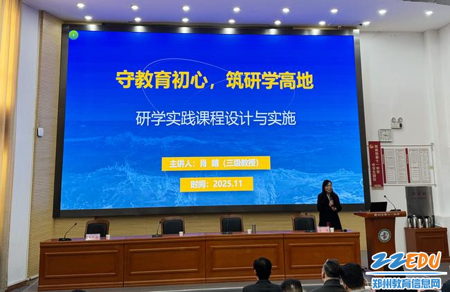 随后,郑州旅游职业学院酒店管理学院院长、河南省教育厅综合实践活动及研学实践指导专委会副主任委员肖靖教授作专题报告《守教育初心,筑研学高地——研学实践课程设计与实施》,报告结合政策要求与教育价值,从需求、主题、目标、内容和评价五大维度,深入解析研学课程“为何做”“如何做”“安全做”的核心问题,提供了系统的理论指导。