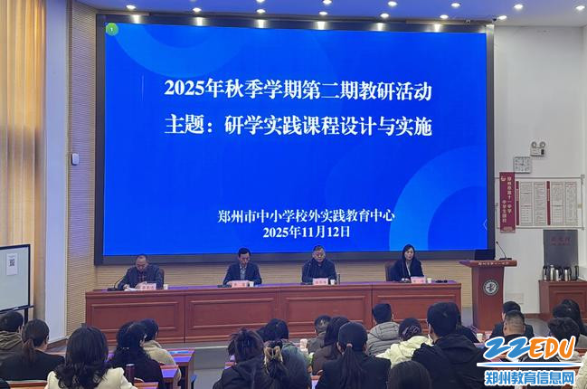 为深化研学实践教育改革,提升课程设计与实施质量,2025年11月12日,郑州市中小学校外实践教育中心在郑州市第十一中学举办2025年秋季学期“研学实践课程设计与实施”教研活动。郑州市教育局党组成员、副局长李雷,郑州市中小学校外实践教育中心党支部书记、主任张华伟等出席会议,各开发区、区县(市)教育局及直属学校、校外实践基地等相关负责人与教师代表参会,共探研学教育提质路径。郑州市中小学校外实践教育中心副主任李克忠主持会议。