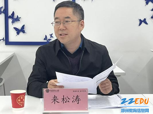 郑州市第十八中学校长来松涛代表学校对课题研究进行支持表态。他说课题研究要基于学校实际工作,突出学校亮点,美术、地理两个学科基地建设的过程性资料及学科基地资源均可助力课题研究的深入,同时也要以课题研究助力学科基地建设、校本课程开发、评价改革推进和学校特色化发展。
