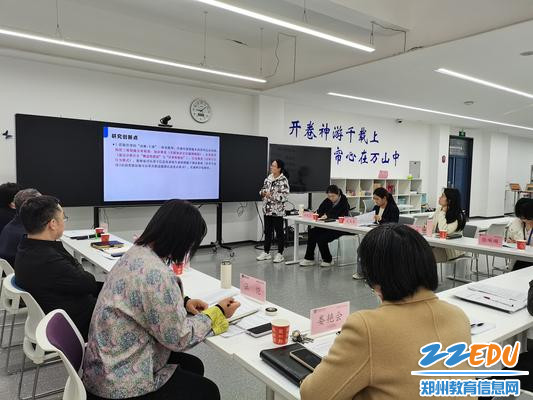 研讨会上,郑州市第十八中学数学学科教师汤欣雨代表省课题组对所立项课题的背景、意义、核心概念、现状综述、目标、内容、方法和详细研究计划进行了既全面又突出重点的汇报。郑州市第十八中学美术学科教师陈冬、地理学科教师张志华分别代表市课题组围绕研究进度、阶段成果、存在的问题及改进措施、下一步计划等多个方面对自己的研究情况作详细汇报。