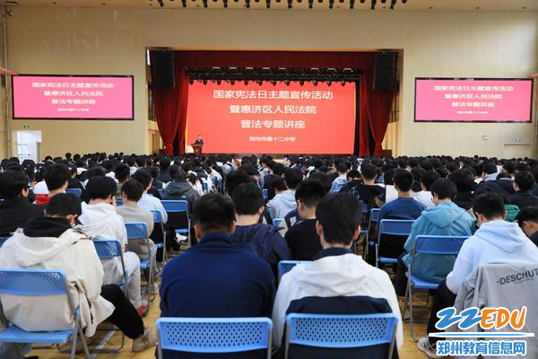 为深入推进青少年法治教育,切实增强学生法律意识与自我保护能力,有效防范校园欺凌风险,2025年11月13日下午,郑州市第十二中学以“筑牢青春防线,法治护航成长”为主题,面向全体高一学生开展普法专题讲座。活动聚焦“拒绝校园欺凌”与“《民法典》常识解读”两个模块,以法治力量为青少年身心健康成长筑起坚实屏障。