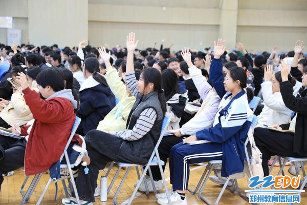 随后,滑明勋庭长围绕《民法典》展开讲解。他以“社会生活的百科全书”为喻,结合高中生日常场景,从“民事行为能力划分”“诚实信用原则”“校园侵权责任认定”三个方面切入:通过“网购商品质量问题如何维权”“同学间运动受伤责任谁担”等贴近生活的案例,让抽象的法律条文变得生动易懂;借助“未成年人能否独自签订合同”等互动提问,引导学生主动思考法律与自身的关联。滑明勋庭长幽默通俗的语言、层层递进的讲解,赢得现场阵阵掌声,让《民法典》知识真正从“书本”走进“校园生活”。