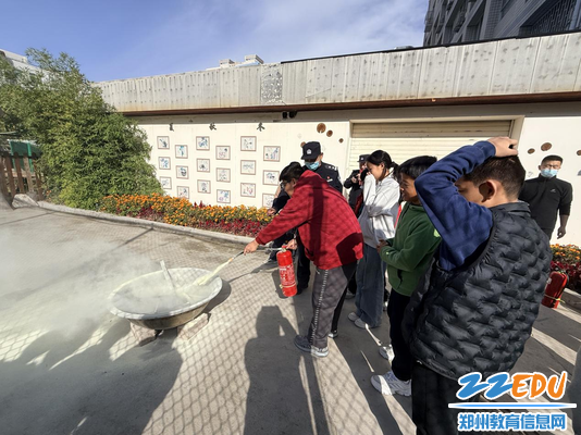 金水分局杜岭派出所张滔警官邀请学生代表操作灭火器