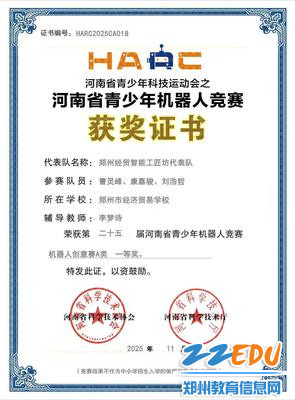 11月13日,从河南省青少年机器人竞赛官网获悉,在2025年举办的第二十五届河南省青少年机器人竞赛中,郑州市经济贸易学校智能工匠坊代表队与电子信息技术代表队不负众望,凭借“地震搜救机器人”“农业灌溉机器人”两项创新作品,双双斩获机器人创意赛A类一等奖,在全省参赛学子中脱颖而出,彰显了学校青少年扎实的科创素养与实践能力。
