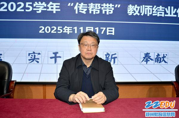 会议第一阶段是对2022—2025年“传帮带”工作的深情回顾与成果见证。副校长黄江元系统总结了以往“传帮带”活动,青年教师通过师徒共同备课、相互听课、撰写纸质教案、参与各级比赛等多种形式得到了成长。随后,张凯为圆满完成培养任务的10位青年教师颁发结业证书,充分肯定了他们三年来的努力与蜕变。结业教师代表王攀老师分享三年“传帮带”成长感悟。随后,张凯为全体青年教师指明了奋进方向。他表示,要把教育当作一种事业,其价值在于奉献;把教育当作一门科学,其价值在于求真;把教育视为一种艺术,其价值在于创新。他勉励青年教师要怀揣理想主义精神,秉持严谨的治学态度,严格要求自己,并对学生倾注深厚的人文关怀,希望他们不断学习,为教育事业做出新的更大贡献。