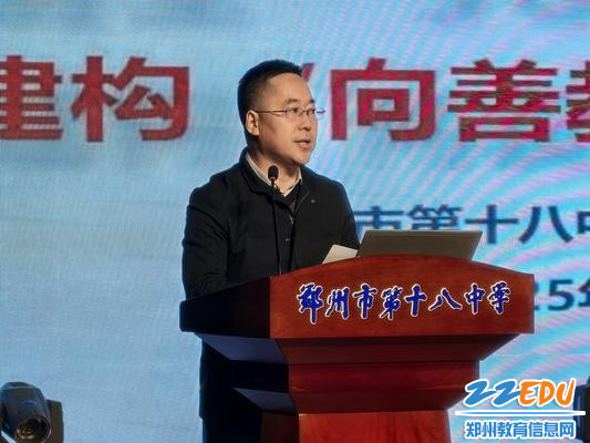 2025年11月20日上午,由郑州市教育局主办的郑州市家校社协同育人“教联体”建设工作推进会在郑州市第十八中学报告厅召开。会上,郑州市第十八中学校长来松涛以“创生‘3G生长力’计划,建构‘向善教联体’新模式”为主题作典型经验交流,系统介绍了学校在“教联体”建设方面的深入探索与成功实践。