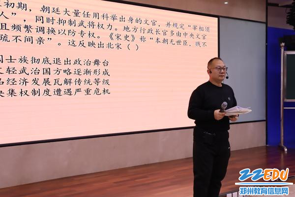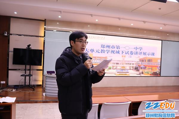为深入探索核心素养导向的课堂教学改革,推动大单元教学理念在考试评价环节落地生根,实现“以评促学、以研促教”的良性循环,助力学生实现从“知识积累”到“素养生成”的进阶,全面提升教育教学质量,11月18日下午,郑州市第一〇一中学举办大单元教学视域下文科试卷讲评展示课活动。活动由学校教师发展中心主任朱春英主持,学校领导及全体文科教师参与。