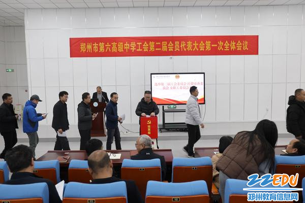会上,樊昭宣读《郑州市第六高级中学工会第二届会员代表大会第一次全体会议选举办法》,宣读了三个委员会的候选人建议人选名单,经全体代表举手表决通过。会议同时表决确定了监票人与计票人名单。全体工会代表以高度负责的态度,本着公开、公平、公正的原则,采用无记名投票方式差额选举产生了第二届工会委员会委员,等额选举产生了第二届工会经费审查委员会委员和女职工委员会委员。