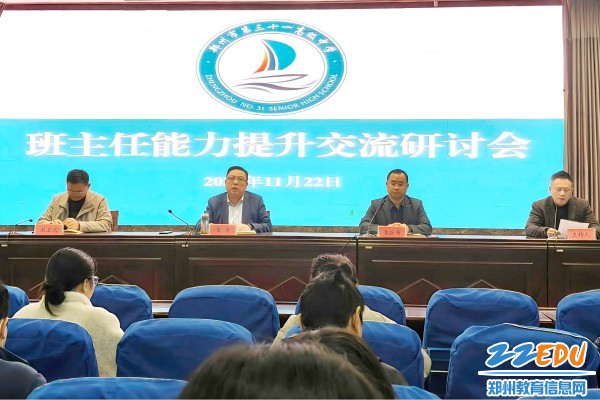 11月22日上午,郑州市第三十一高级中学在学校报告厅召开班主任能力提升交流研讨会议,组织班主任学习、交流,共同研讨,促进班主任队伍的专业素养和管理能力提升。学校特邀郑州外国语学校副校长吕勇为班主任们作报告。郑州市第三十一高级中学班主任代表杨鹏飞作班级管理经验分享。郑州市第三十一高级中学党总支书记曾涛、副校长李恒新、副校长刘卫光等领导以及高一、高二、高三年级全体班主任、副班主任参加会议。