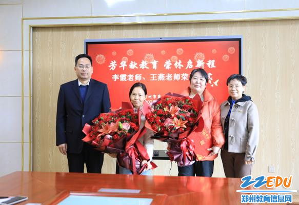 周铭动情说道:“郑州市第十二中学建校74年来,正是因为有一代代像李霞、王燕老师这样的教育人,扎根讲台、深耕不辍,才换来了学校今天的发展与荣光。你们在岗位上奋斗了三十余年,把最美好的年华奉献给了这里,是学校发展的‘奠基人’,更是我们后辈心中的‘引路人’!感谢你们的辛勤付出,祝愿你们往后的日子平安喜乐、福寿绵长。”