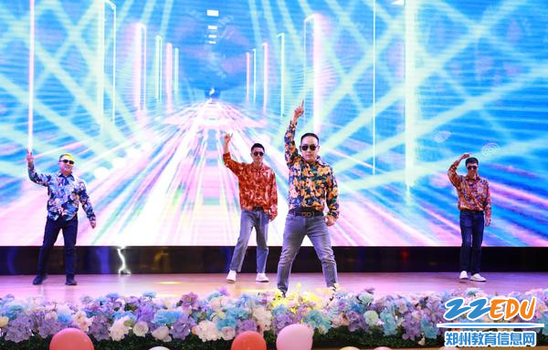 政治组与历史组联合朗诵《盛世如愿》,声音铿锵、情感饱满,抒发对祖国盛世的深情礼赞;数学组一曲《数学disco》点燃全场,用动感说唱演绎公式定理,颠覆刻板印象,喝彩不断。生物组小品《生物组里觅太极》融科学于传统,刚柔并济;历史组王勇老师一曲《想家的时候》,唱出佳节时分对家的思念;政教处与物理组共舞《护花使者》,复古旋律中传递守护的温情;化学组歌舞《教师阵线联盟》,展现教育人同心同德、并肩前行的精神风貌。