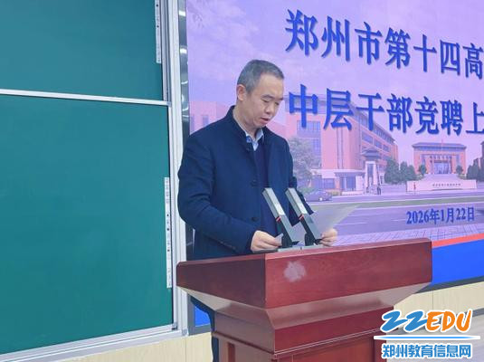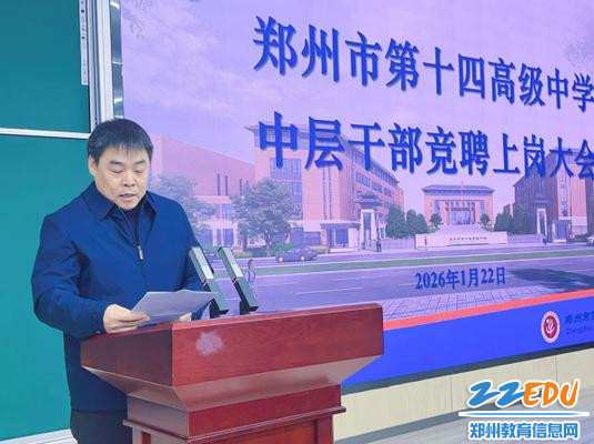郑州市第十四高级中学党委副书记、校长张帆宣读竞聘规则