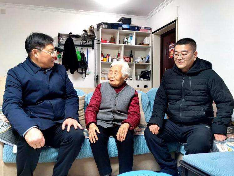 郑州市第一〇六高级中学校长胡庆周向90岁的王新文老师送上新春祝福与美好祝愿