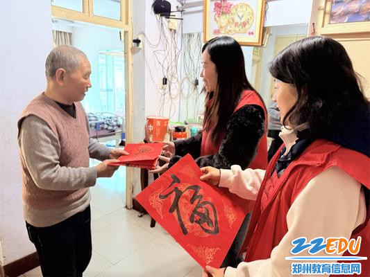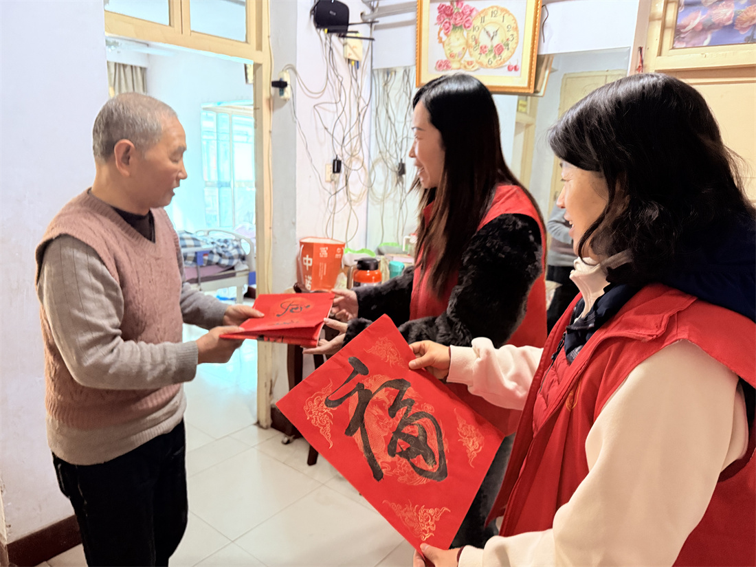 在接下来的“送祝福上门”服务活动中,志愿者们带着写好的春联、剪好的窗花,走访社区高龄老人家庭,将新春的问候与温暖送到家中,让他们感受到浓浓的节日氛围与社区关怀。他们接过春联时脸上满是喜悦,不住地称赞道:“这手写的春联才有年味儿,比买的更有温度!”