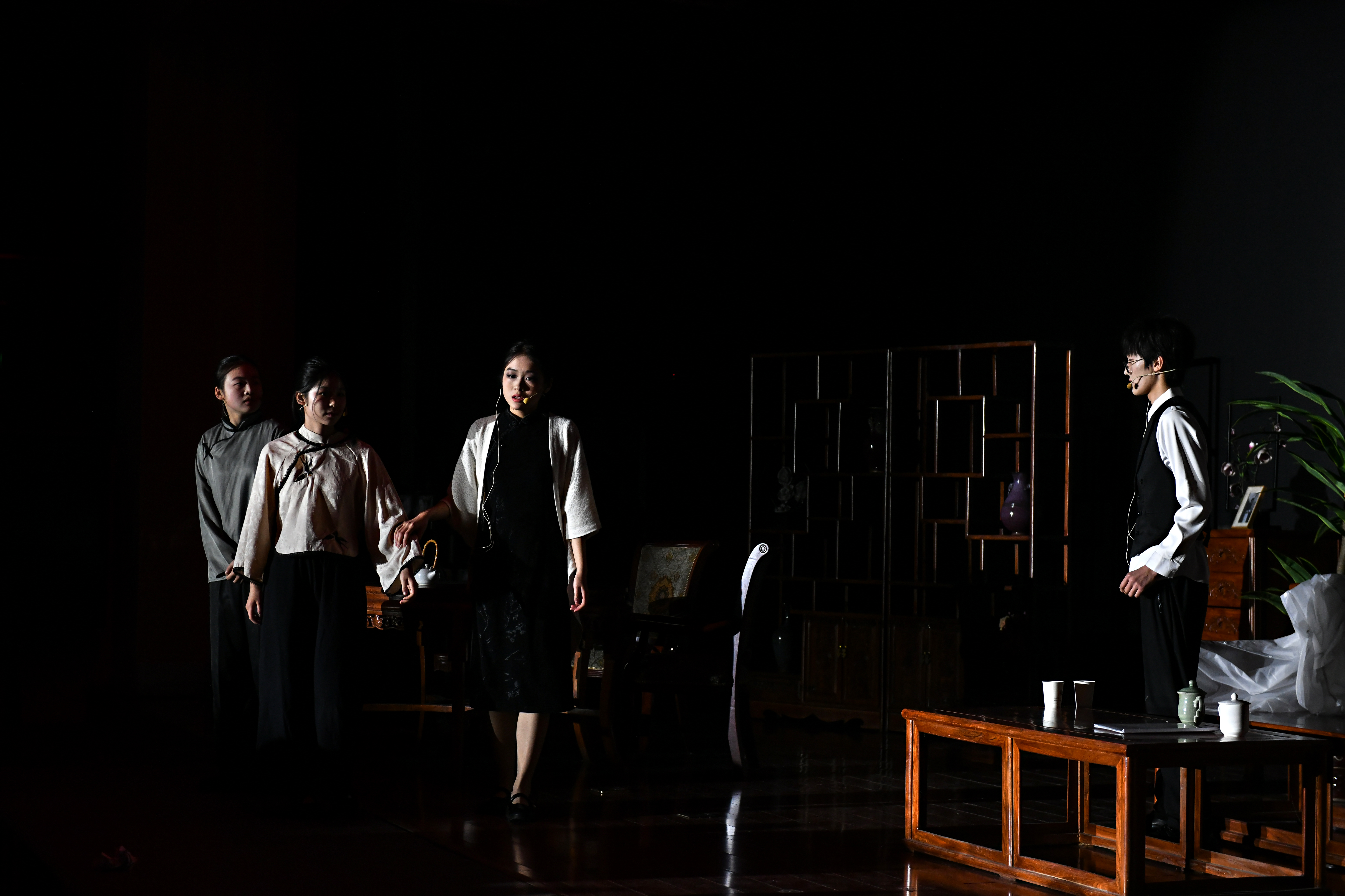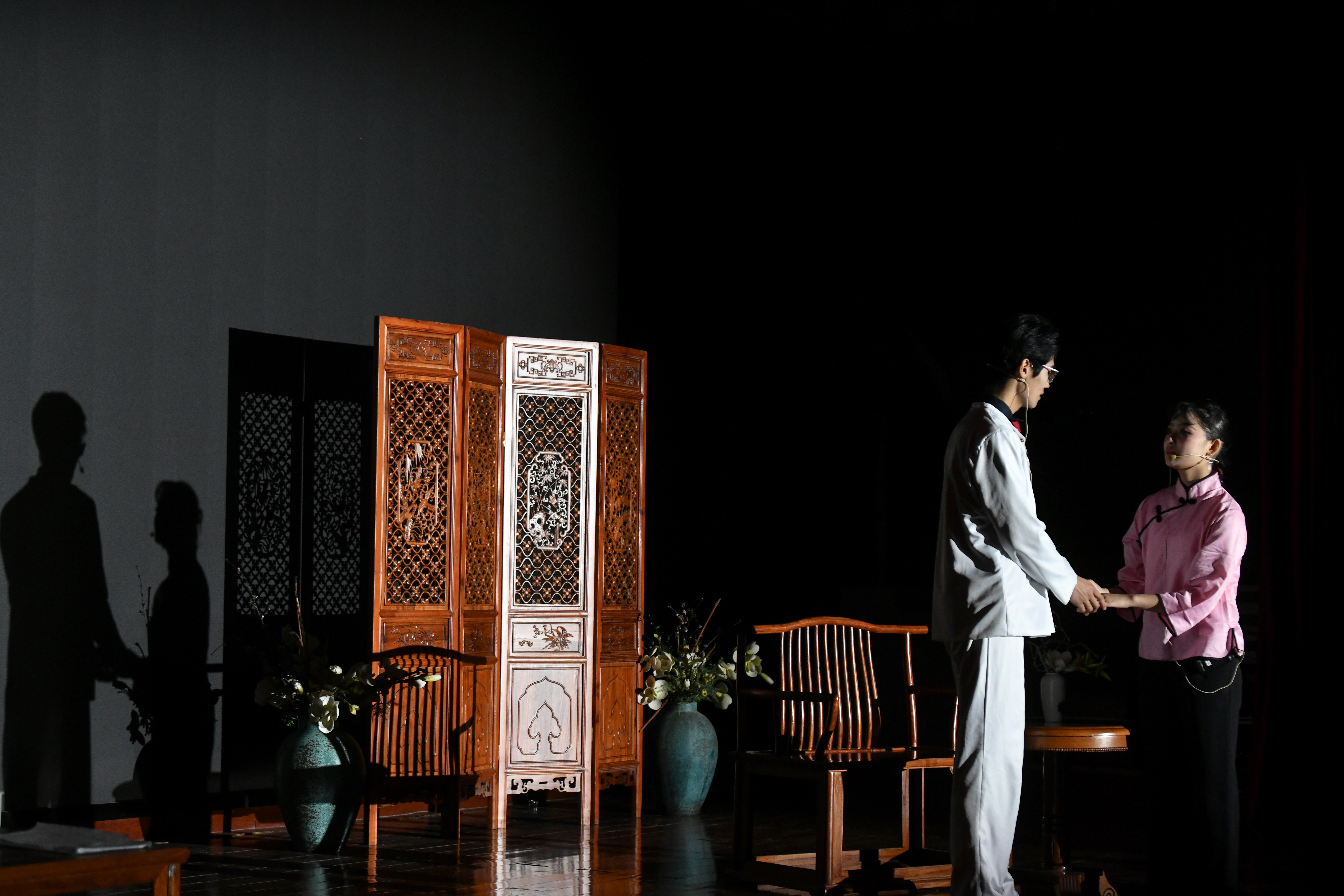本次《雷雨》演出,是该社团继经典长剧演绎后的又一次重要尝试。为还原经典内核,学生演员们历经数月精心筹备,逐字研读剧本、反复打磨台词,在课间间隙对戏揣摩角色语气,利用课余时间在空教室排练走位,剧本上密密麻麻的批注见证了他们的用心与执着。演出中,学生们以饱满的情感、精湛的演技,将周朴园的专制、蘩漪的压抑、四凤的纯真等人物形象刻画得淋漓尽致。舞台上,幽蓝色灯光与低沉音乐交织,渲染出紧张氛围;太师椅、沙发等道具的巧妙布置,暗合人物身份与关系;精准的舞台调度,让剧情张力十足,完美呈现了周鲁两家跨越数十年的恩怨纠葛与命运悲剧。近三小时的演出中,观众全程沉浸其中,随着剧情起伏时而屏息凝神,时而为之动容。