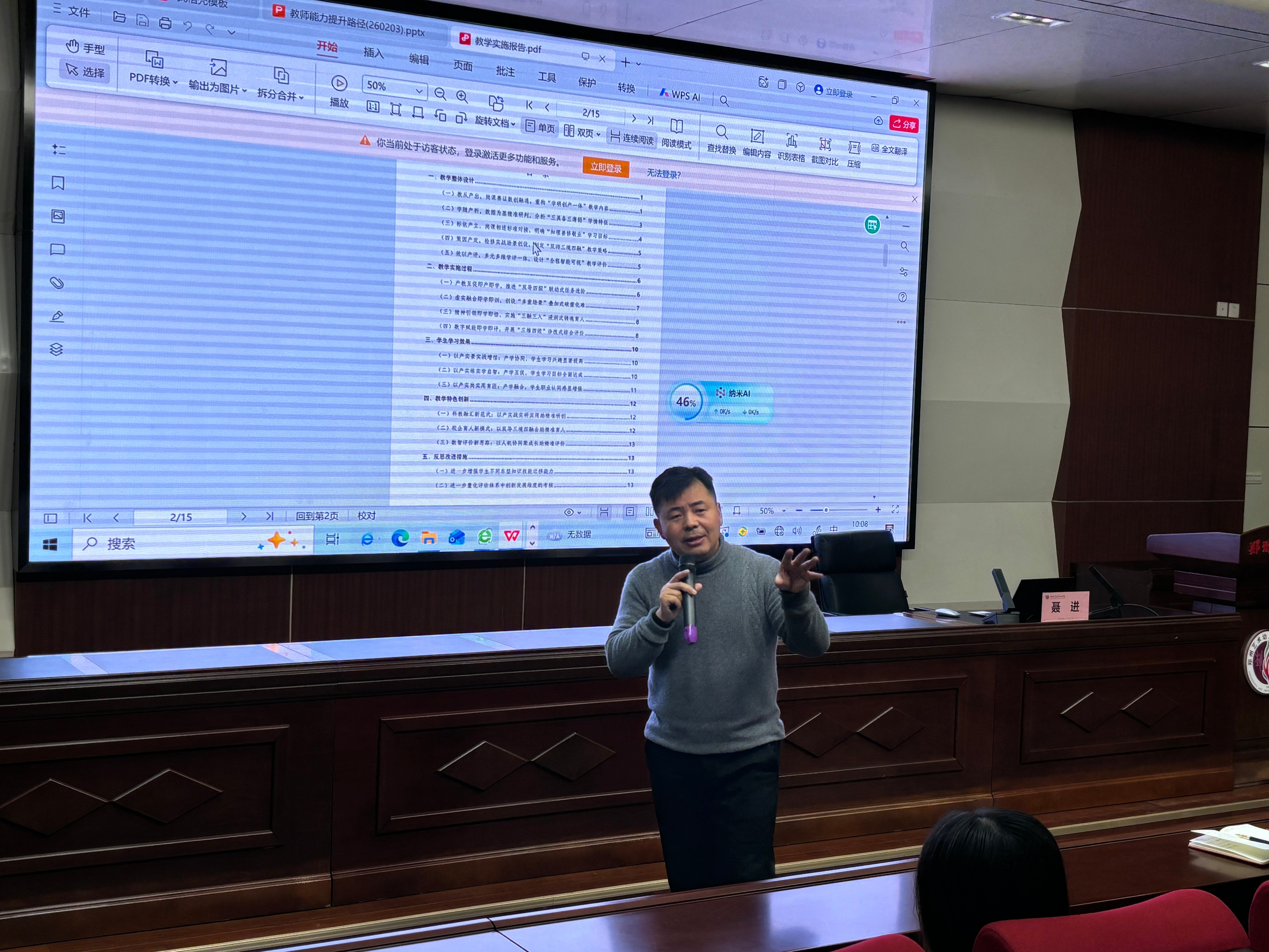 2月5日,为提供兼具理论高度与实操性的教学改革思路,学校特邀国务院政府特殊津贴的职教领军人才、现任黄冈职业技术学院交通学院院长聂进作专题讲座。他以《教师能力提升路径》为题,聚焦教学计划构建、产教融合、教学评价改革等核心内容,结合自身丰富实践经验,帮助教师夯实教学根基、提升专业授课实效。郑州艺术幼儿师范学校党委书记周卫红在培训中强调,职业教育高质量发展离不开教师专业能力提升,期待通过专家指导,助力教师破解成长难题、夯实教学根基。