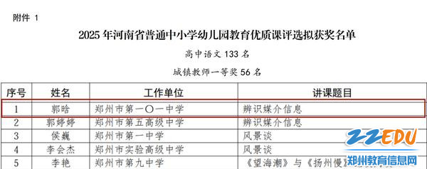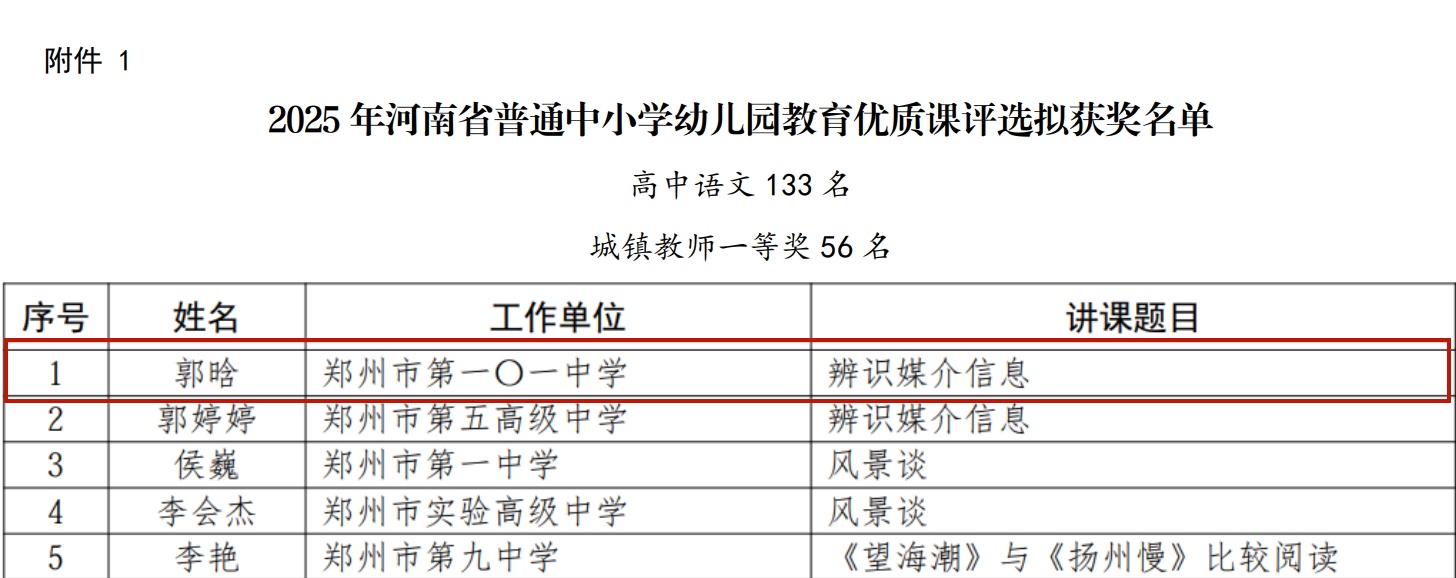 从市级赛场到省级赛场的角逐,郭晗老师的获奖之路,是其个人深耕杏坛的执着坚守,是语文教研组凝心聚力、协同共进的真实见证,更是郑州市第一〇一中学先进育人理念的鲜明彰显。
