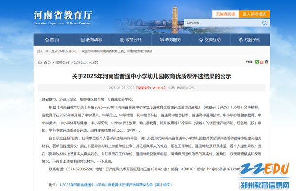 河南省教育厅关于2025年河南省普通中小学幼儿园教育优质课评选结果的公示